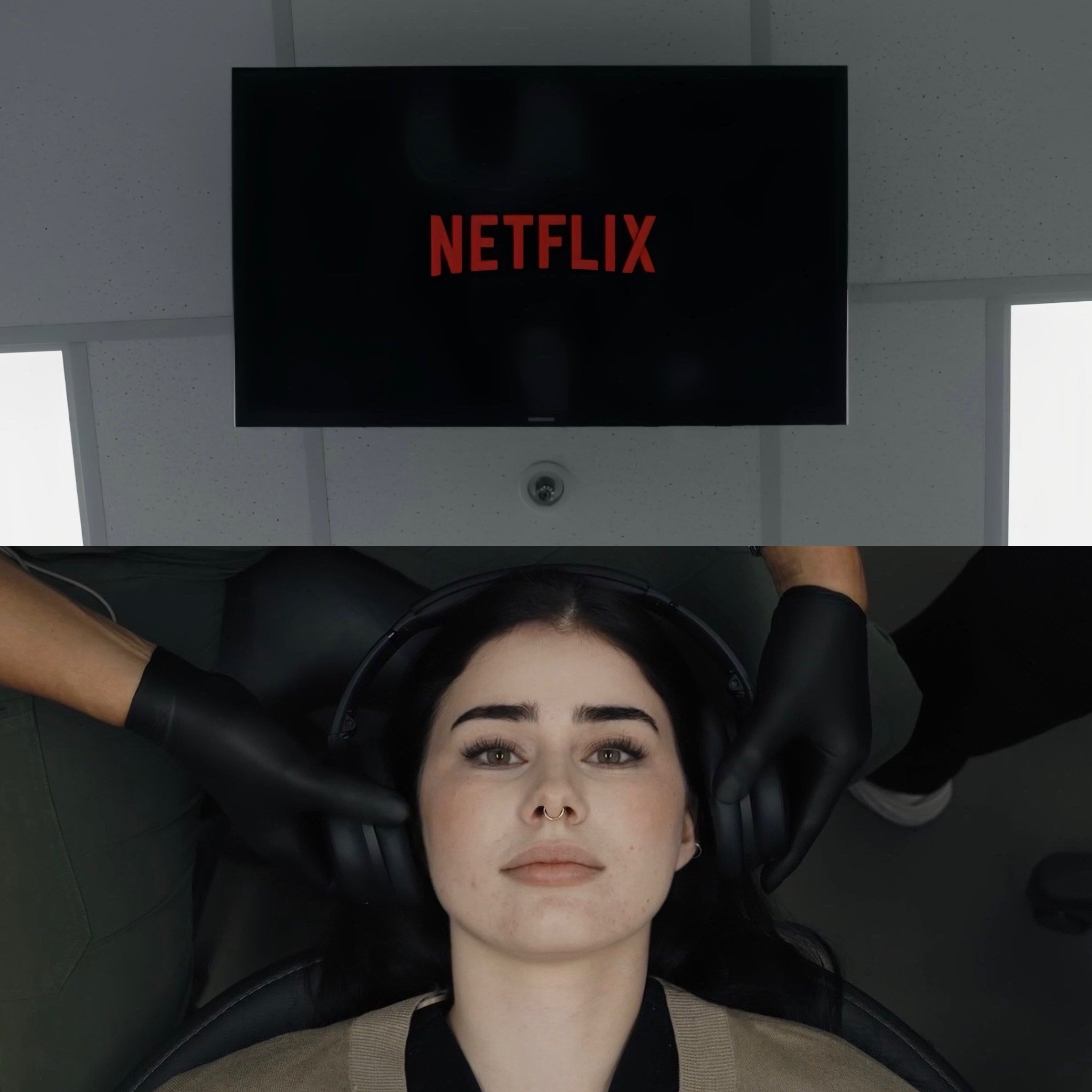 To make your visit as comfortable as possible, we recommend arriving 5 minutes early to your first appointment to complete any paperwork and settle in. Each of our surgeries is equipped with ceiling-mounted TVs with Netflix and noise-cancelling headphones. If you have a favourite show, movie, or music preference, let us know and we’ll have it ready for you.